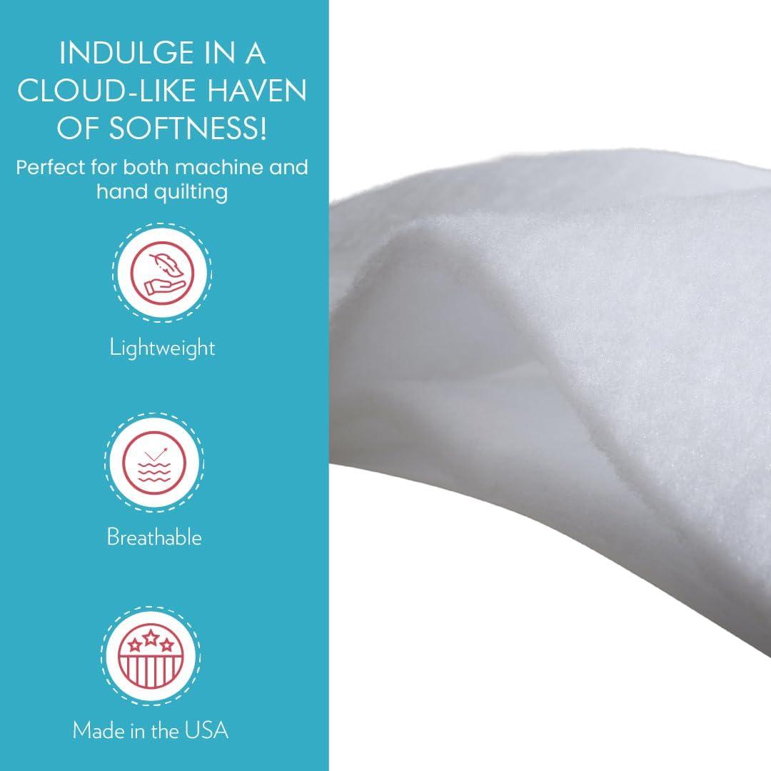 Lightweight Batting for Quilting: The high loft of this lightweight, breathable batting provides a pronounced relief when hand quilting, making it perfect for beginners. This quilt batting is excellent for making baby quilts and small lap blankets