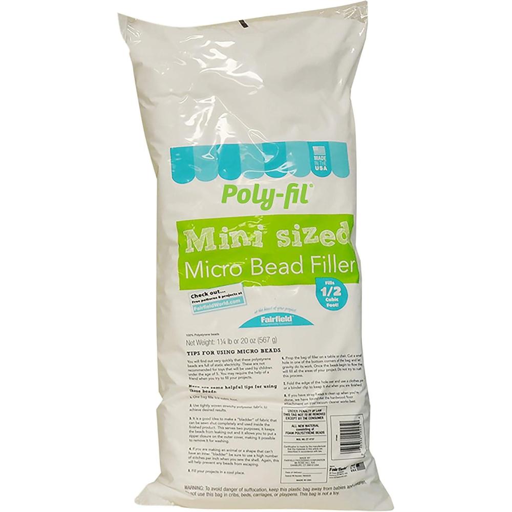 Fairfield Poly-Fil Mini, Premium Micro Bead Filler, Polystyrene Stuffing Beads, Soft Pillow Stuffing, Bean Bag Filler, Stuffing for Stuffed Animals, Toys, and Dolls, Ideal for Floam, Slime, 20-Ounce