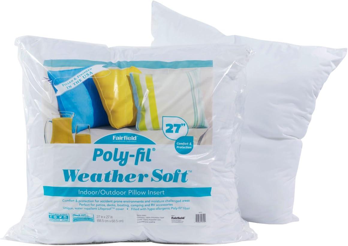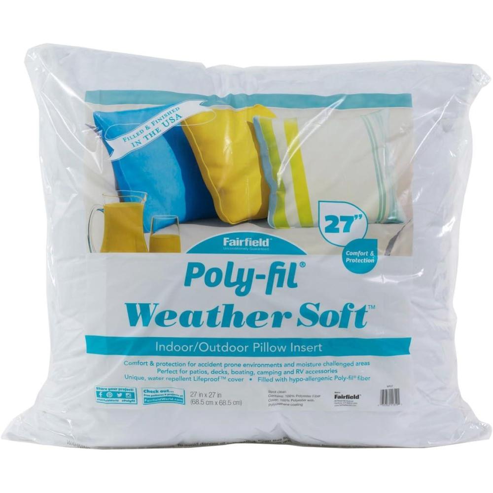Fairfield Weather Soft pillow inserts have a water resistant shell that keeps the inner 100% polyester fiberfill from becoming saturated in wet weather. With Weather Soft you have the freedom to decorate your outdoor space using any fabric style you prefer. Durable comfort for patio and deck furnishings, boating, camping and RV accessories. Cover with outdoor or marine fabrics for lasting beauty. Unconditionally guaranteed. Poly Fil Pillow Insert 27″x 27″