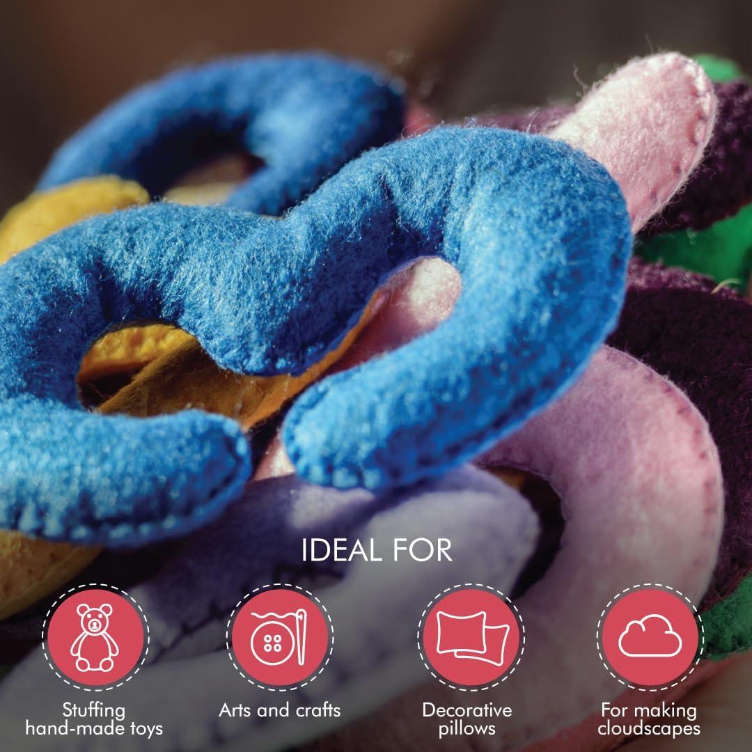 Stuffing for Stuffed Animals: Our Poly-fil fiberfill is also great for giving that squishy, comfortable feeling to hand-made dolls, toys, and animals. They are also perfect for putting up some cloud decor to enhance a space and giving it a fun look.